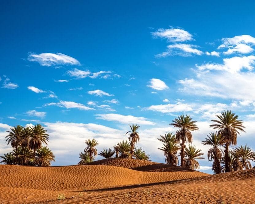 M’hamid, gelegen diep in het zuiden van Marokko, wordt vaak de poort naar de Sahara genoemd. Dit kleine, rustige woestijndorp vormt het eindpunt van de verharde weg en het begin van de uitgestrekte zandduinen die zich zover het oog reikt uitstrekken. In tegenstelling tot de bekendere woestijnplekken, heeft M’hamid zijn authentieke en ongerepte sfeer weten te behouden.